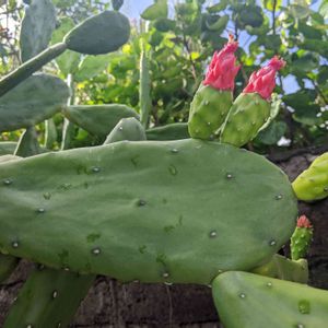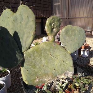 大きなウチワサボテンに憧れて、メルカリで以前購入した葉っぱ1まい。ハートが❤生えてきています!近場にでかいのは、売ってない💦💦💦1枚30センチくらいあって、でっかい鉢に、1枚、下を埋めて植えています。土のあいているところには、多肉をポンポンと、植えています。どう育つのか、興味いっぱいのわたし✨旦那いわく、トゲが〜💦と、評判は、いまいち💦なんやけどねー😆
