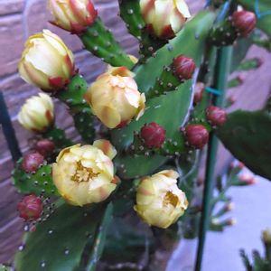 今日もお疲れさまでした😌💓 ずっと☁️でこんな日は、 ずっと好きな曲で🎶😍 ~ウチワサボテン~です🌵 黄色い花が咲き始めています💠 蕾も沢山付いて楽しみです🎵