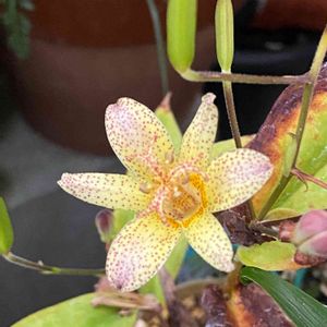 黄色いホトトギスが一つだけ咲きました。 よくがんばって咲いてくれた、ありがとう💕 日当たりが悪いので、 来年はもっといい場所に植え替えるつもり。