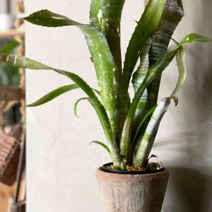 #tankbromeliad 筒状に葉を展開する #タンクブロメリア 。 今回は、 #ビルベルギア が入荷しました。 こちらは #ビルベルギアパイプライン 。 幻想的に散りばめられたスポットにライン(横縞)が入り、なんともアーティスティック。(H 50cm) 是非手に取っていただきたい、と思いつつ手放したくないひと鉢でもあったり...。 (そんな植物がいっぱいです 笑)