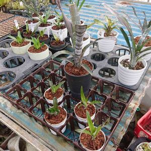 おはようございます♪ 今日はのんびり畑で #ブロメリア 類の #株分け 作業♪ #ビルベルギア・パイプライン も順調に増殖中! 知り合いの要望で小さい3寸硬質ポット植え♪ #沖縄 #植物 #ビルベルギア #パイプライン