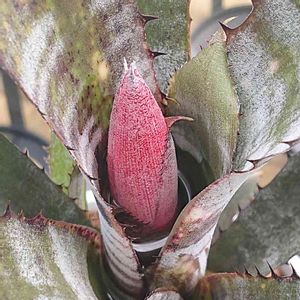 先週末から天気が悪かったので、畑の見回り怠けてたら、いつの間にか #ビルベルギア #パイプライン に #つぼみ が!? 今度こそ結実してくれるかな? #ダース・ベイダー の子株も動きが無いので株分けタイミングかな? #沖縄 #畑仕事 #ブロメリア