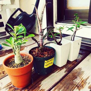 植え替えるとまた魅力が増しますね …ガジュマルたちは胡蝶蘭入ってた余りの鉢でごめんよ笑 それにしても、アデニウムと素焼き鉢が思いのほか合う気がする