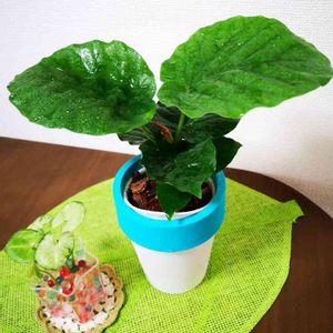 コブ付 二股クワズイモ🍠 冬の間に葉を枯らしてしまって、外に出し、お日様とお水を懲りずに与えていたら、角の様にピンピンと新芽が出てきてくれました✨ 諦めなくて良かった~❣️