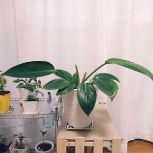 «フィロデンドロン» 昨年の1月にDAISO産、大きい観葉植物で仲間入りした子✨ 次々に新芽を出して大きくなってきてます🌱 今回、一回り大きな鉢へお引っ越ししました。