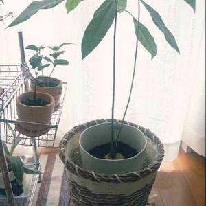 一つのアボカドの種から 二つ目の🌱が出て こんなに成長しました❕ 二つ目の成長が早い💦 一つ目を追い越す勢い💦💦 一つ目は成長が停滞気味💧 二つ目に栄養が行きまくり❔❔