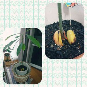 鉢底から根っ子が出ていたので、アボカドも植え替えました✨ 益々大きく育ってね~😊👋