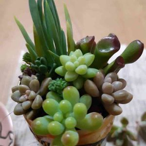 今日の新入り④⑤⑥ ひとつは「虹の玉」なんだろうけど… 赤いのは「カクタス」 あとひとつは名無しさん😖 2頭あってなんだかお買い得な気が✨ 寄せ植えやりたくて お迎えしてみた✨ 適当に 寄せてみた💔 自己満足💛