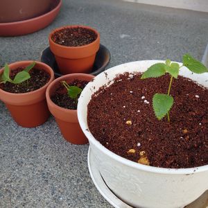 根が張ればラッキーくらいに思って先月挿し芽していたキャットテール 丁寧に土をほぐしていくと、予想を遥かに超える根の張り方にびっくり!😲 表面にはなんの変化もないけど、ちゃんと土の中で頑張っていたようです💪🌱 今日大きな鉢に植え替えました💡 あとどうするか悩んでたキャットテールの生き残りも小さな鉢で2つに分けて挿し芽 そして去年採ったバジルの種も小さな鉢に、芽出るかな~? 他にも百均で見つけた種まきポットなるものにも種を植えてみました 4つしか入ってないのに、1つ崩してしまい大誤算😱 もう数日で20度超えの天気になるので、うまく育ってくれるといいな😌