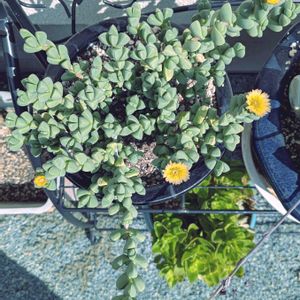 南側の軒下で頑張って大きくなった緑が綺麗なコルプスクラリア💚碧魚蓮と思ってたけどお花は黄色だし…🤔グーグルレンズが教えてくれました👏夏の暑さにも冬の寒さにも挫けることなく可愛いお花をいくつも咲かせました🌼