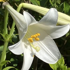 おはようございます。 白とオレンジにうっとり。🤗🤗 庭にて。 ユリ科。