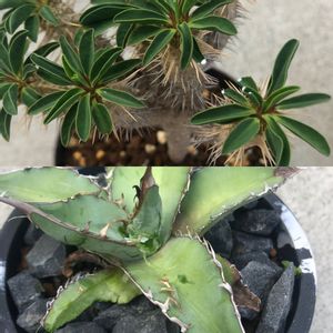 アガベ四姉妹参上!! 画面下、見切れてますがピクシーもう1株います(゚ω゚;) ちーさいながらもそれぞれの特徴を出してる子達💕 とはいえ、まだどんな子達か手探り状態。 大きく立派になってね!!