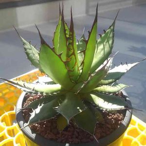 アガベ 吉祥冠錦 またまたアガベ! いやー、ハマりましたね完全に。 今回は葉折れやトゲ折れなく持ち帰りました! アガベ持って帰るときほんと神経使う。笑 葉の色合いとトゲの感じがお気に入りな一株です。