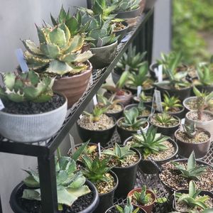 アガベ達 夏も近づき、だいぶ 様になってきたかなぁ🤔 夏だけにサマーになって。。。 |彡サッ!