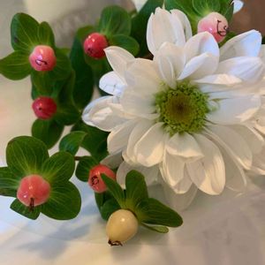 白い菊のお花と、 ヒペリカムのお花が赤く実をつけた切り花。 これはお仏壇用のお花です… 明日、お寺さんが来て下さるので、 早めのお盆。 今年もご先祖様をお迎えし、 供養したいと思います🙏 年に一度会えるご先祖様と、 何を語ろうかなぁ〜☺️