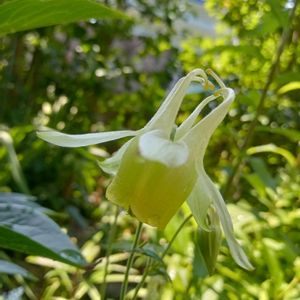 昨年ご近所さんから戴いたオダマキの白が咲きました。白というよりは薄グリーンです。 こぼれ種で増えることを期待してます。