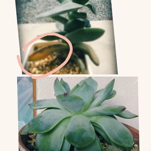 多肉植物初心者の私を助けて下さい😨 ①上の神刃の下葉が茶色に変色…硬いはずの葉がグテグテです💦上の葉はまだ元気 ②下の子はチワワエンシス?下葉がグッタリ お日様不足?水不足?一部解け始めで水怖くてあげれない… 今何をすれば良いでしょう?よろしくお願いします🙏