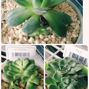 🌿百均の多肉ちゃん達🌵 上ヤマト姫、右下ベルム、左下ピンクルビー赤ちゃん3子 みな赤ちゃんが付いてて嬉しい💕🤗 お盆ですね~なんか忙しいなあ💦