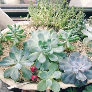 気持ちの良い朝です。 寄せ植えた子達が元気でなにより! 普及種の可愛さはたまらん🤤