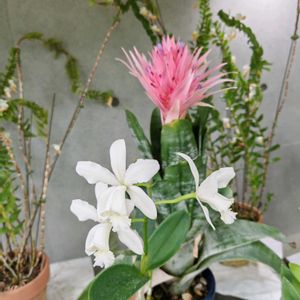 エクメア・ファスキアタ(奥) カトレア(手前) おはようございます(^o^)/