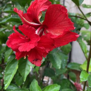 ハイビスカスレッドフラミンゴ🦩 先週HCで見かけタグに「暑さに強い」と書いてあり連れて帰りました😆👍2段咲きのハイビスカスは珍しいですね🌺 ハイビスカスケイトさん💜🩶暑い中良く咲いてます☺️ ハイビスカスたちは東側の午後は日陰になる場所に置いています😲