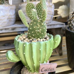 我が家のサボテンたち🌵 バニーカクタス🌵 鉢と同じポーズでいつも楽しそうな二人組😆🌵🌵✨ 満月🌵 大きくてまあるいサボテンさん🌵 テフロカクタス武蔵野🌵 節が増えて上に伸びていきます♪ ペラペラの紙のようなトゲがカッコいいサボテン😎✨体表面には痛いトゲもあります😣 幻楽🌵 ずっと前からこの大きさ💧他の方の投稿を見ると伸びていて、違う品種か⭐️になってるのかと心配になりました🫤モフモフでわかりにくいです、買った時に付いていたタグは鉛筆手書きでした🤔