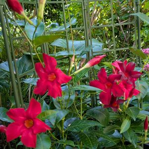 狂ったような暑さのなか しっかり元気に 咲いてます 庭の赤い花 ①マンデビラ サマーラッシュ 思ったより背が高くなった ほんと良く咲きます 暑さにめげずですね😍 ②ペンタス 冬越しの花 昨年より株しっかりと 大きく ③コリウス ロイヤルティ 真っ赤な火曜日 あ、火曜日 サマーラッシュモニター 三ツ星品質モニター PR 参加しますね❤️