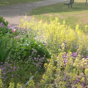 🏙️ 横浜市役所前から🤳 🍃🌹🍃 桜木町駅方面に向かって🍃🌹🍃🌹🍃 数種類の薔薇・カンパニュラ・オルレア・キンギョソウなど たくさんの種類の花達が笑顔で咲いてますよ 少し足を運んで散策してみてはいかがでしょうか