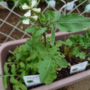 ルッコラ(ロケットサラダ) ルッコラのお花が咲きました♪ ルッコラ、あのピリッと苦味がある部分も大好きなので、サラダで食べたいとキッチンハーブコーナーに植えたのだけど、何故か虫食い多し(T_T) 隣りのイタパセやディルは無事なのに、何故、この苦味のあるハーブの方が虫に好かれるのかしら… 虫食いじゃない葉だけ選り分けると、サラダで使える部分はほんの僅か。 置場所、変えようかなぁ。 実家のミニ・ハーブガーデン キッチンハーブコーナーにて 2023.6.11撮影