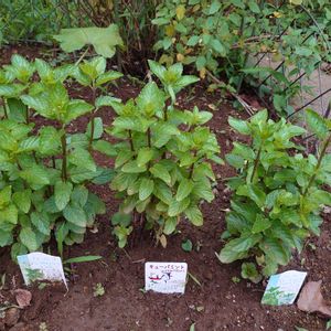 今年もミントを何種類か植えました。 イングリッシュミント、アフターエイトミント、そして、イエルバブエナ多め。 イエルバブエナ 学名:Mentha Nemorosa 科名・属名:シソ科ハッカ属 多年草 別名:モヒートミント、キューバミント 開花時期:8月~9月 耐寒性 : 強 耐暑性:強 原産地:アジア・アフリカ・ヨーロッパの湿帯地域 生育旺盛なので初心者にも育てやすいハーブ。 イエルバブエナとは、スペイン語で「良いハーブ」の意味。 広義ではスペアミントの仲間であり、そのため大まかな味わいはスペアミントと同じだが、スペアミントよりも野性味が強く香りも強いのが特徴。葉も通常のミントより大きい。 ちなみに代表的なミントのうち、ペパーミントはソフトな清涼感と甘さの中に苦みがあるのが特徴で、スーッとする強い清涼感を持つのがペパーミント。 ペパーミントよりさらに香りが強いのがイエルバブエナになる。 キューバ発祥のカクテル「モヒート」に使われることでも知られており、文豪ヘミングウェイもこの「イエルバブエナ」を使用したモヒートを好んで飲んでいたと言われている。 実家のミニ・ハーブガーデンにて 2023.6.11撮影
