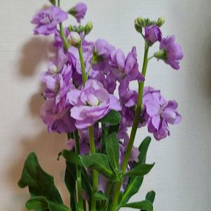 おはようございます🙋♀️ ストック💠 アブラナ科 ストックの切り花が元気がなくなったら切り口を湯揚げ80°以上の湯に30~40秒つける😆 これでシャキット長持水を小まめに替えてあげ酢、台所洗剤を少し垂らす良いですよ😊 香りが好きなお花🤭🤣