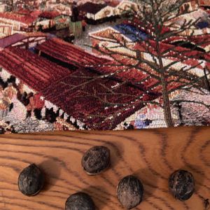 10月に拾った山胡桃の殻を貝合わせのように接着して 昨日からクリスマスモードです🎄🎅