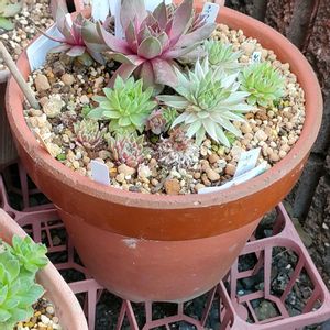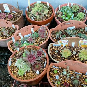 センペルビウム ギャラクシースター🩷 花博会場のHaru.strategyさんでゲット〜🎵 子株がぐるりと顔を出しています😍 蒸れに弱いので黒いビニールポットから取り出し、ひとまわり大きなプラポットに植え替えました。 これから夏に向かってミドリン🟢になるそうですが、冬には紅葉もするようです💕