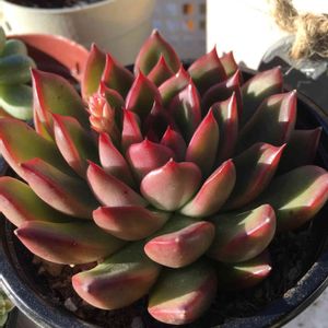 おはようございます ちょっぴり寒いですが快晴☀ 昨日ワイン教室🍷で 先生に寄せ植えを渡してきました 教室の先生はもちろん 皆さんにもステキと言ってもらい 単純なので 来年は寄せ植えの勉強でもしちゃっおうかと🎵 そういえば いつもネットでお世話になってる方に チマチマ寄せの多肉ちゃんを たくさん譲っていただいたので でき上がった寄せ植えを 私の出品ページで確認用としてあげたら 他に2人もイイね🎵を付けてくださり 何だか嬉しくなりました 褒められるとうれしい🎵😍🎵 昨日塾の保護者会で 頑張ってること褒めてあげてくださいと言われました うん 褒めよう🎵 今日も一日いい日でありますように🍀