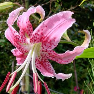 こんにちは😊✨😊 玄関前の鹿の子百合✨ 咲き始めました🙌🙌 雨も上がって気持ちよく咲いてるよう🥰 次々に咲いてくれそうで楽しみです✨