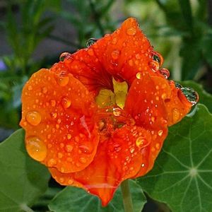 今日のお花✨ ナスタチウム✨ 我が家の花壇でさきました✨ 雨上がりのナスタチウムさん😊 大好きなオレンジ色 😊✨😊