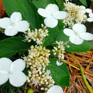 キュンキュン乙女倶楽部 🏷️雨雨ふれふれ 連投失礼します🙇💦 濡れてるって云うか 溜まってる😂 アジサイひな祭り この枝は 真花も 八重で咲きそう💕
