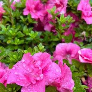 mimozaさんの 🏷️日曜日は日本を感じる和の花 🏷️雨粒シリーズ☆ 参加します💗🩷💕 雨上がりの八重のサツキ💧💧💧💗💗💗満開です🩷