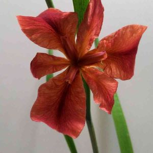 こんにちは😃 ただいま3℃、朝から雪が降ったりやんだりの上に風が強くて寒すぎる😰 今日のお花アイリス🌼 本来は赤〜ピンクらしいのですが、我が家の畑の子はオレンジ〜チョコレート色で咲きます🇺🇸😅 去年5月の撮影📷