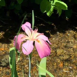アヤメか、しょうぶか、かきつばたか、なんなそこらあたりの花だと思うのですが、名前を教えてください。葉っぱはシューっとしてます。