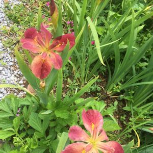 近所のおばあちゃんに頂いて、10年以上育てていますが、名前がわかりません😅 葉っぱは常緑で、根っ子は赤紫のしましまです。 いずれが菖蒲か杜若…見分けつかーん( TДT) 近所のおじいちゃん、おばあちゃん達から色々頂いて、名前がわからないのが沢山…何種類か枯らしちゃったのもあるけど…