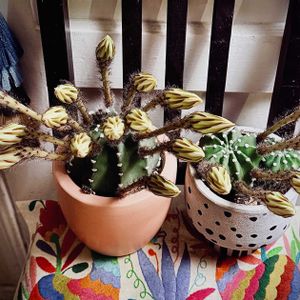 親玉にくっついている小玉が 2日連チャンで開花しました!が、、 珍しくお昼頃から開花しようとした右のお花が残念な結果に😢 お疲れ様でした