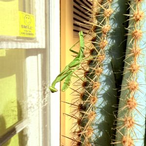 Ouch! 痛くないの⁉️ カマキリが家の近くに現れることは良い変化の前兆や困難を乗り越える力を与えてくれるサインだそうです 意味は嬉しいけどカマキリが 心配です。。