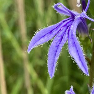ソバナ✨ お花が一つずつ付いて 雌蕊が花冠からあまり突き出ていないのでソバナかなと思いますが 違いましたらお知らせくださいね☺️ 去年はツリガネニンジンと間違えてしまいました😂 2025.8.14 やっと参加できます 🏷️水曜日は水色 🏷️癒しの薄紫 🏷️青い花マニア 🏷️スライドショー♪ 🏷️花友さんに感謝♡ 🏷️パワーをあなたに 🏷️優しさをありがとう♡