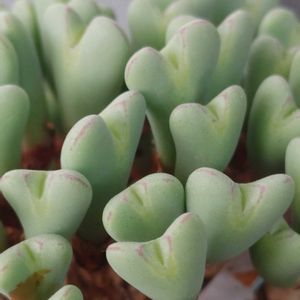 ①琥珀玉1号くん 😱ムンクの叫びみたい ②2/25の1号くん 😱この頃は ちょいグロめ👻 ③琥珀玉2号くん しなやかに脱皮中~✨ ●自分用メモφ(・ω・`)● リトープス属『琥珀玉』 別名: リトープス・カラスモンタナ (L.karasmontana ssp. bella) 自生地: ナミビア南部アウスからウィトプッツ(Witputz)にかけての一帯 色 : 緑・黄系 シルバー・白系 赤・ピンク系 茶・黒系 花色:白花 特徴 : 「琥珀玉」は、頂面が丸く膨隆し、ハート型になる中型のリトープス。 「花紋玉」に似ていますが、くっきりと入る窓の枝模様が特徴。 秋には白色の花を咲かせます。 分頭し、最多で50頭を越える大株になることも。
