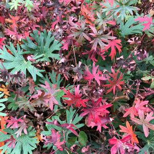 昨日のお天気と打って変わって今日はどんより雨模様 しばらく冷え込む日が続きそうです 花壇の片隅にあるゲラニウム🌸 もう植えて20年以上 毎年春に赤紫の花をたくさん咲かせてくれますが、この時期も紅葉とグリーンが混じり合ってそれなりに華やか🍁🍀