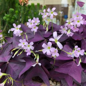 こんばんは‼️ オキザリス紫の舞が、涼しくなり花が咲き始めました💕 葉っぱも綺麗です❣️