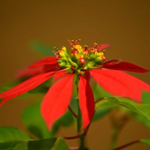 「ショウジョウボク」猩々木 ポインセチア 原産地 メキシコ 原種 ※ユーフォルビア・プルケリマ ※開花が進み小さな雌花の花柱も識 別できます(花弁はありません) 京都府立植物園温室2025/12/7 ポインセチア展開催中でしたー