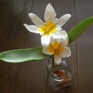 昨日、ビオラをもらったお花屋さんで 一目惚れして買った、チューリップ🌷 チューリップの原種だそうで、ちっちゃくてカワイイの😍 背丈は20cmくらいで、お花は3cmくらい❤