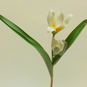 白いお花に、筆で描いたような緑色の線が入っていて 中心は、黄色いの❤ たった3cmの、小さなお花🌷 かわいい😍